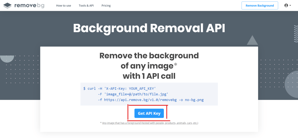 Para remover los fondos, vamos a utilizar un servicio llamado Background Removal API (https://www.remove.bg/api), el registro es gratuito y obtendremos 50 imágenes por mes sin costo con fines demostrativos, aunque si desean resultados de imágenes de mayor tamaño, cuentan con diferentes planes.